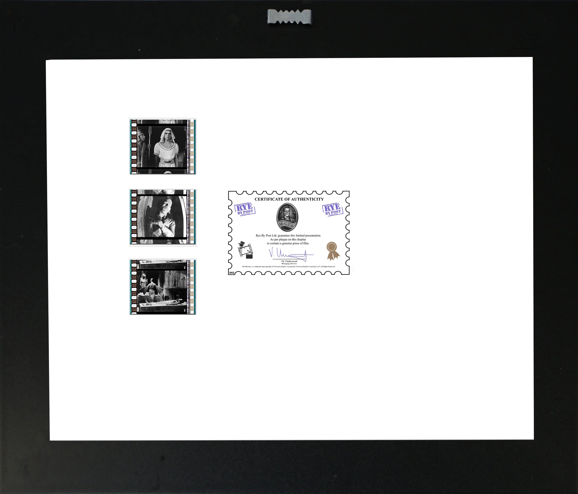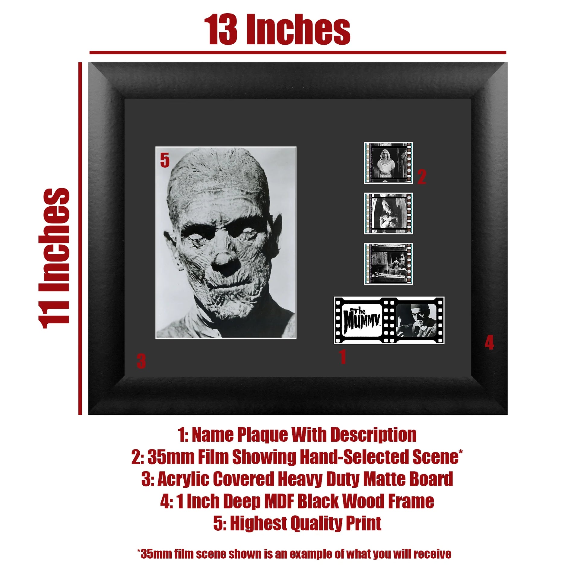 Take a step back into the era of classic horror with this FilmCells presentation. This special edition framed collectible features Boris Karloff as the Mummy and contains five clips of real 35m film from the movie.